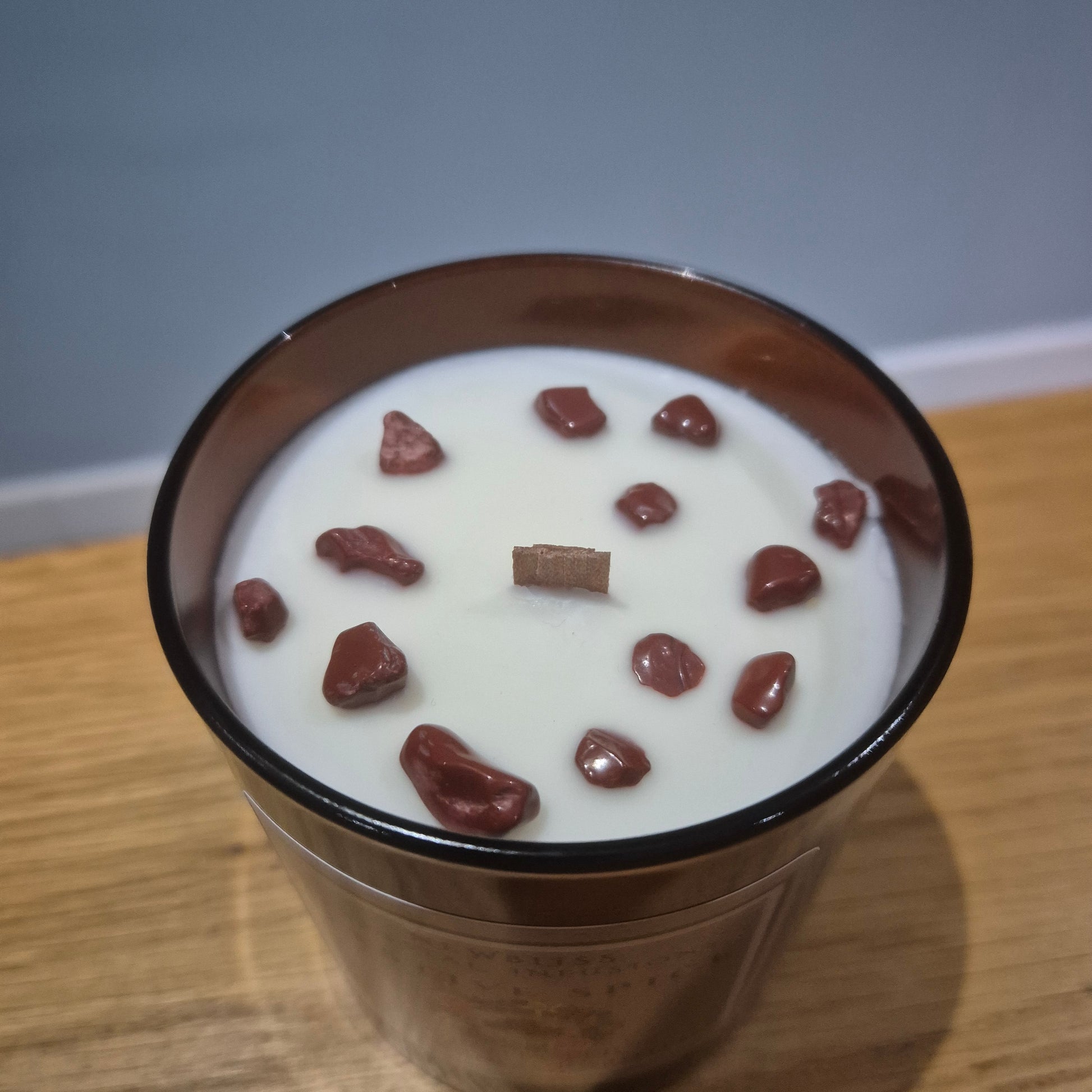 Embrace the warmth of tradition with our Festive Spice Candle, blending cinnamon, orange, clove, and seasonal spice. Infused with grounding Red Jasper for steady, vibrant energy, it brings comfort and cheer to any space. A perfect, heartfelt Christmas gift.