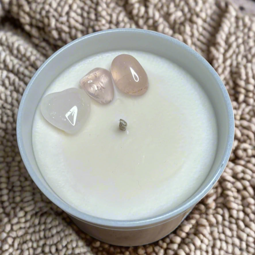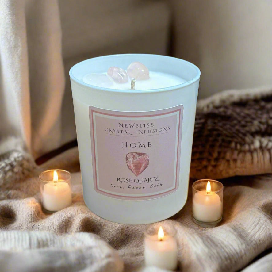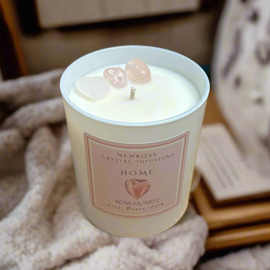 Home is a beautifully crafted soy wax candle infused with rose quartz, known for it's healing properties and ability to promote love and harmony. The luxurious scent of Damson, Plum and Patchouli creates a warm, comforting atmosphere, enhancing well-being and relaxation. This candle not only elevates your space with it's rich fragrance but also harnesses the powerful energy of crystals.